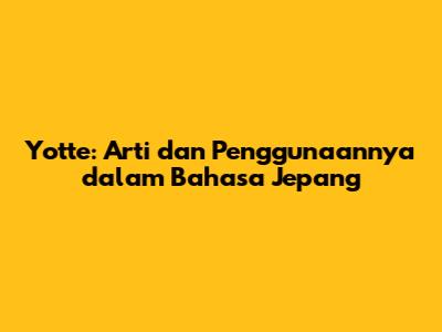 Yotte (ăăŁăŚ) adalah kata yang penting dalam bahasa Jepang yang memiliki beberapa arti, yaitu "oleh karena itu", "dengan/melalui", dan "tergantung pada". Penggunaannya lebih umum dalam situasi formal dan membutuhkan pemahaman konteks yang baik. Dengan memahami arti dan cara menggunakan yotte, kamu akan semakin mahir dalam berbahasa Jepang dan mampu memahami berbagai jenis teks dengan lebih baik.